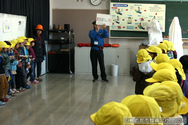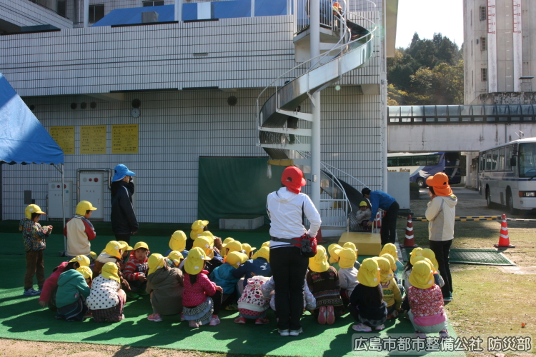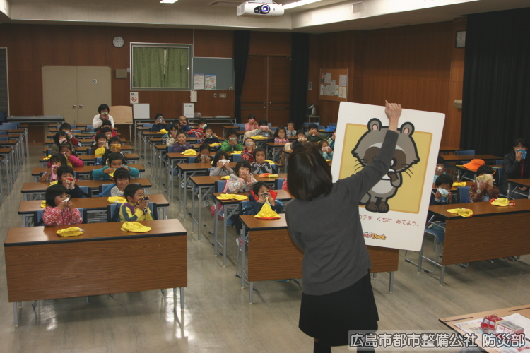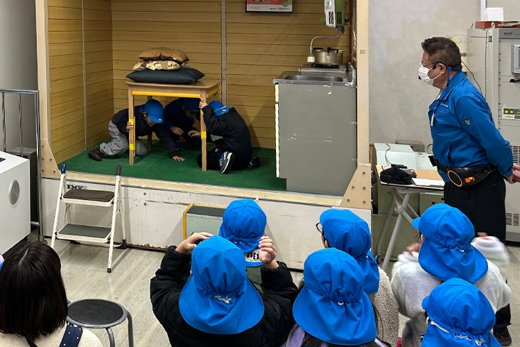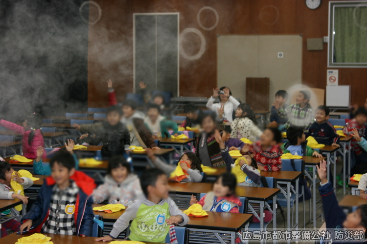 広島市総合防災センターでは、園児や小学生などのお子様を対象に、火災や地震などが起きたときの対処方法を学ぶ体験学習を実施しています。