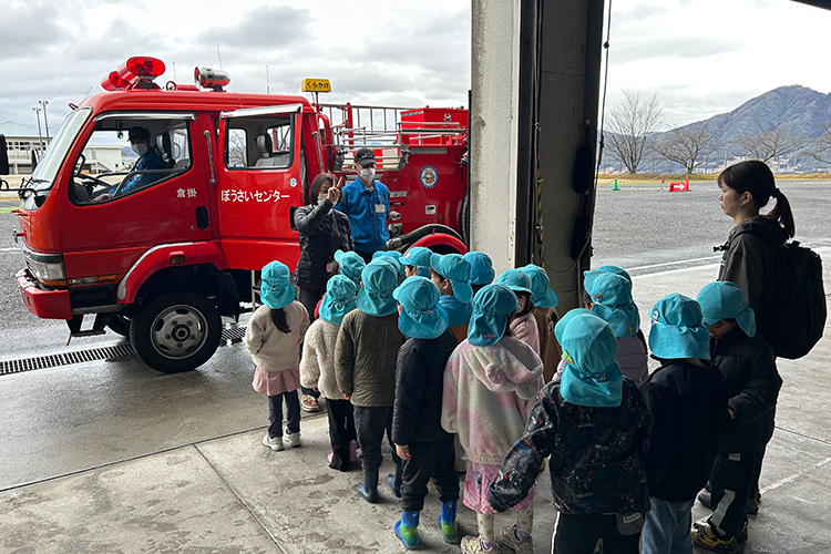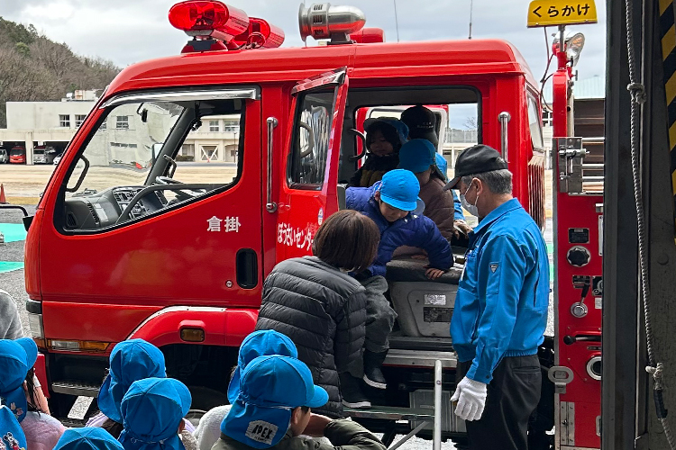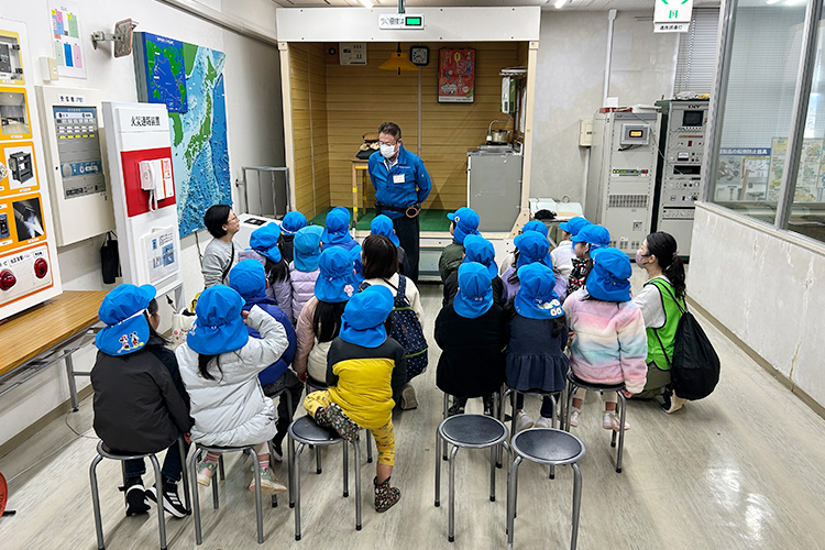地震や火事、災害の怖さや、日頃の備え、消防署の仕事等について学びます。