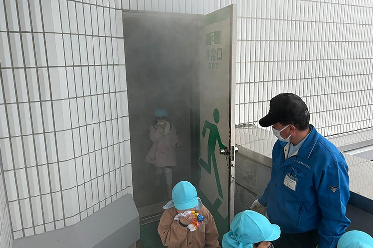 | 10:10~10:40 | 避難体験 | 煙(無害)の中での避難体験、すべり台による避難体験 |