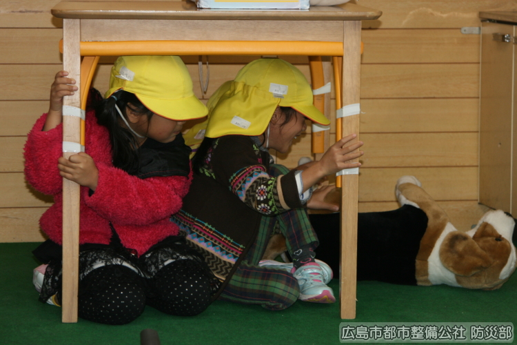 地震を疑似体験。地震がおきたら、どのように身を守るかを学びます。