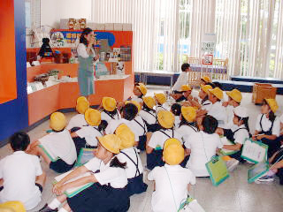 - 3階研修室にて概要説明・ビデオ鑑賞 → 2階資源ごみ選別ライン見学 → 1階展示ホール(エコ製品コ-ナー見学) → 自転車再生室見学(終了) → 自由見学